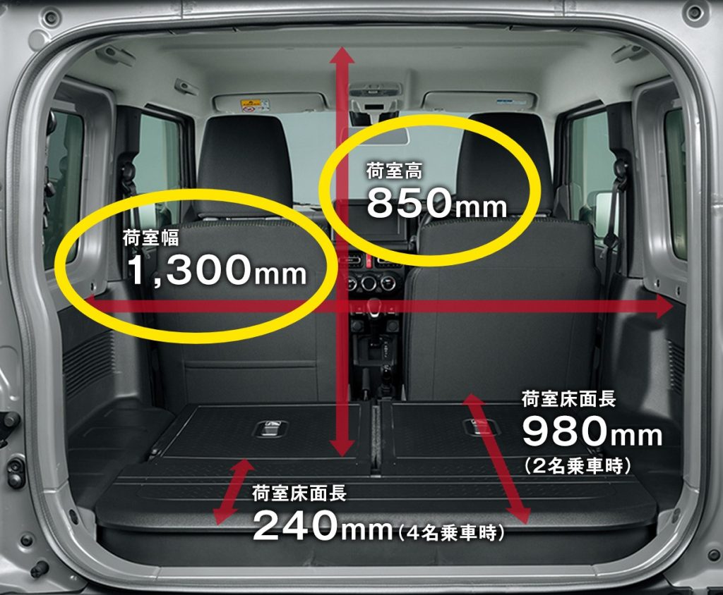 荷室幅は1,300mm(130cm)と軽自動車ジムニーと変わらない!