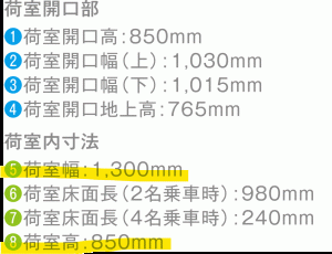 荷室幅1,300mm(130cm)ですね。
