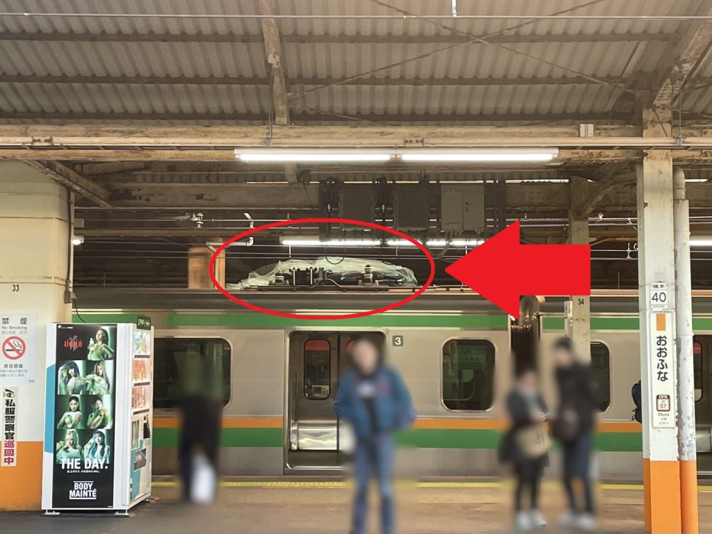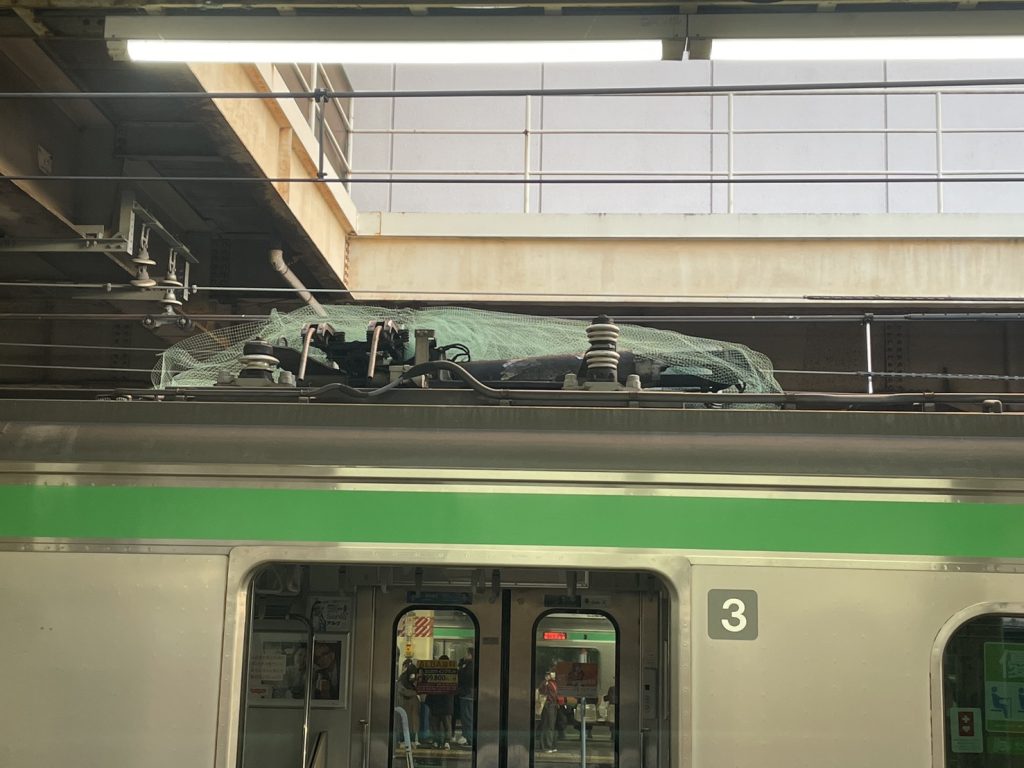 明らかにパンタグラフのところに何かいる!!